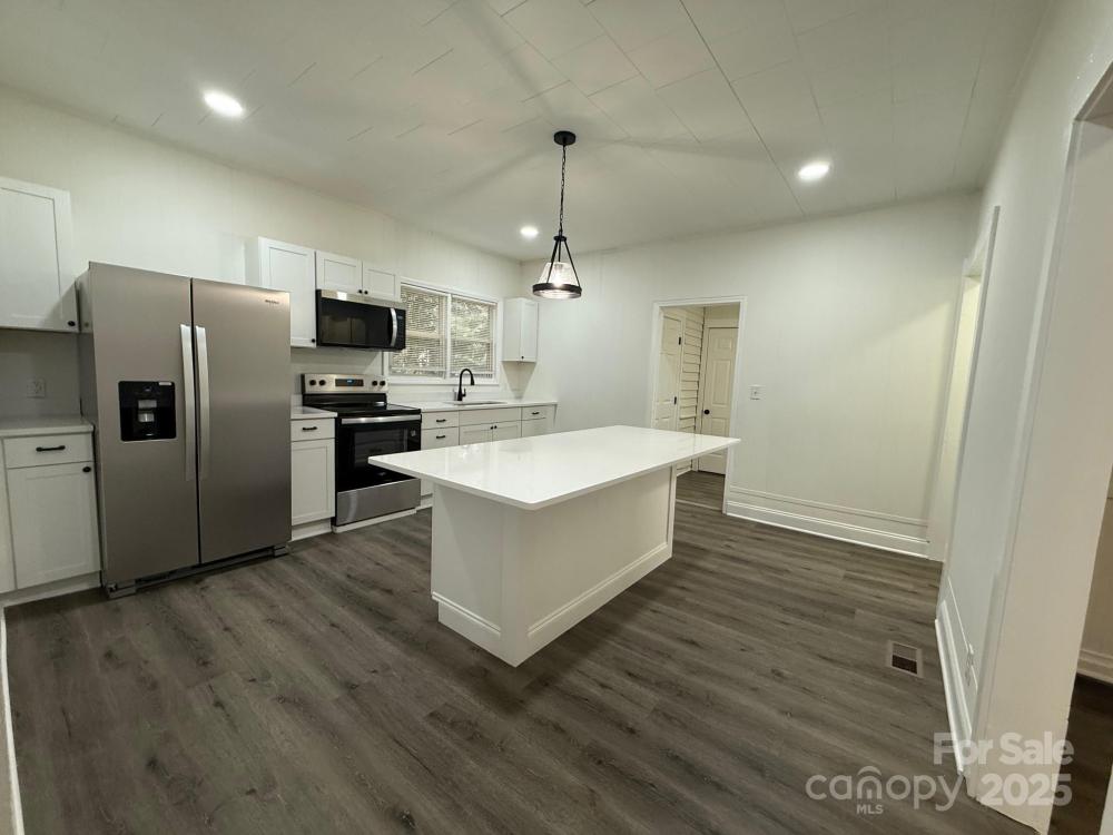 Charming, move-in ready 2bd/1ba home in an established neighborhood. Enjoy the spacious covered front porch year-round—perfect for relaxing or entertaining guests. The dark green vinyl siding with brown trim lends a warm, rustic curb appeal. Step inside to a generous living room and oversized bedrooms, providing ample space for family and guests. The updated kitchen is a true highlight, featuring a large eat-in island, brand new appliances, elegant quartz countertops, and a walk-in pantry for extra storage. Recent updates throughout add to the home's appeal. Don’t miss your chance—this property is sure to go fast!