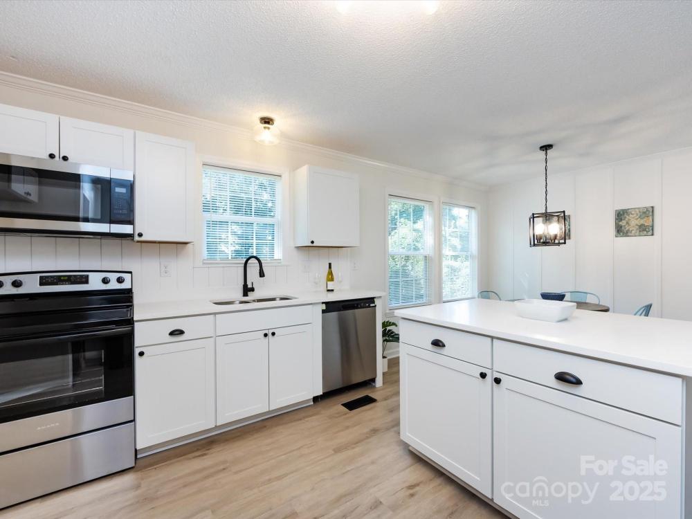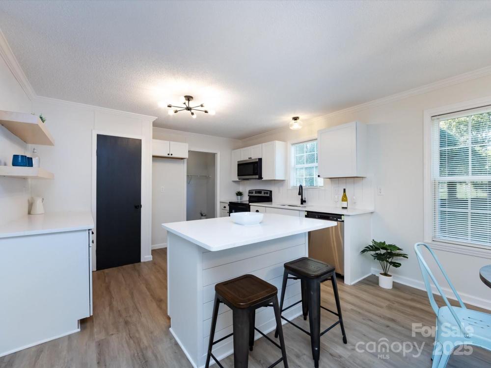1% Mortgage Rate Buy Down Available! Discover turnkey living just minutes from Downtown Gastonia at 907 E 4th! This updated 4-bedroom, 2-bath home blends modern finishes with everyday comfort and a flexible layout that works for today’s lifestyles. Large 0.42 city lot! Step inside to an inviting, light-filled living area with new LVP flooring & carpet, fresh designer paint, and on-trend lighting. The kitchen shines with all new cabinetry, solid-surface countertops, shiplap backsplash, custom farm shelving, barn doors, custom island and new stainless steel appliances—perfect for weeknight dinners or weekend entertaining. The private bedroom wing features a spacious primary suite with an updated bath and generous walk-in closet space, plus three additional bedrooms that can flex as guest rooms, office, or playroom. Both baths are stylishly updated with contemporary fixtures and finishes. Enjoy easy indoor-outdoor living with a level yard ideal for gatherings, pets, and play—bring your grill and imagination! Thoughtful touches throughout—updated hardware, trim details, board and batten & ship lap accent walls—create a fresh, welcoming feel. Location matters, and 907 E 4th delivers: convenient to downtown dining and shops, greenways, FUSE district and parks, I-85 for quick commutes, and just a short hop to Charlotte attractions. Everyday essentials, schools, and healthcare are all nearby. With 4 true bedrooms, this home offers the space and flexibility hard to find at this price point in Gastonia. This one will go quickly!