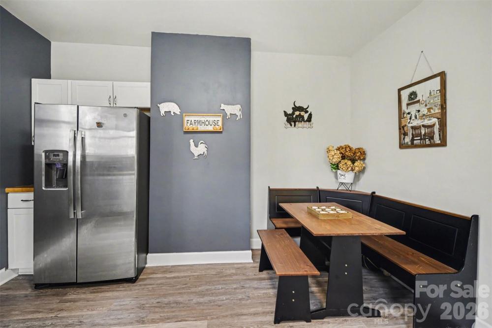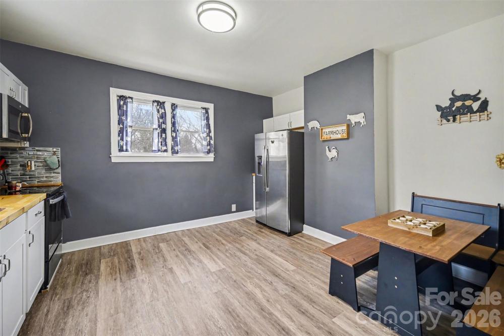Charming 3BR/2BA cottage-style home with preserved character and thoughtful updates throughout! Refinished hardwoods in the living room. The primary suite with private bath. Bedroom/Office features Limestone-washed (non-Functional) fireplace for a unique charm. Renovated kitchen features wood cabinetry, butcher block countertops, subway tile backsplash, and stainless appliances including refrigerator. Updates include luxury vinyl plank flooring, updated the electrical system. Located on a quiet street just steps from the neighborhood park with walking trails and covered picnic areas. Move-in ready!