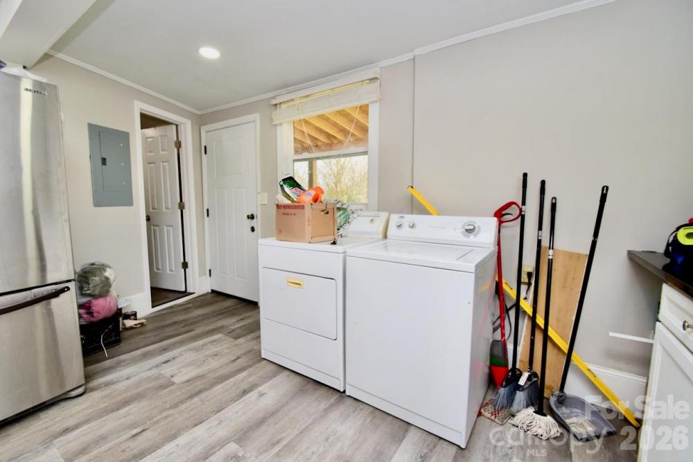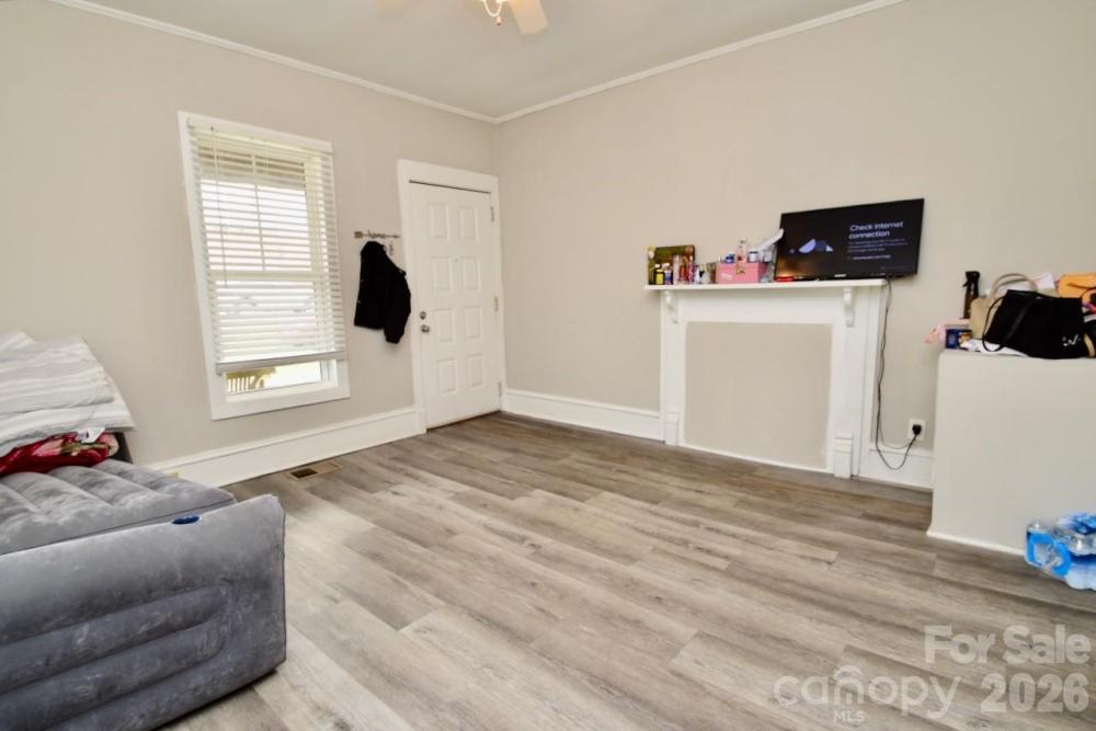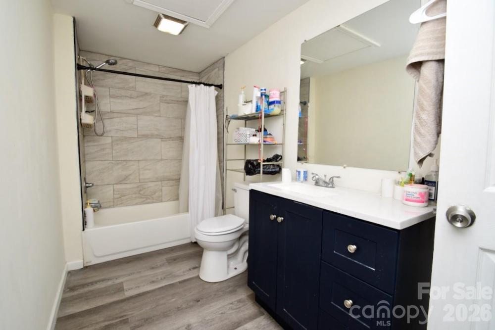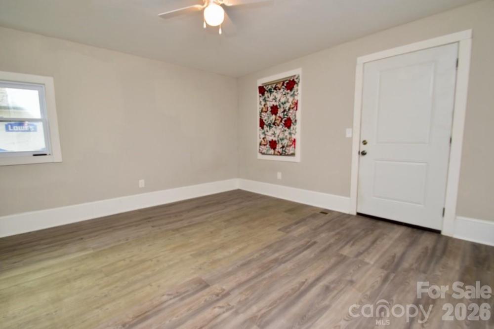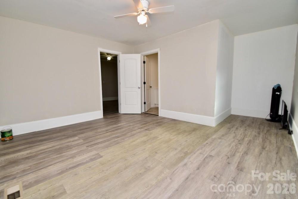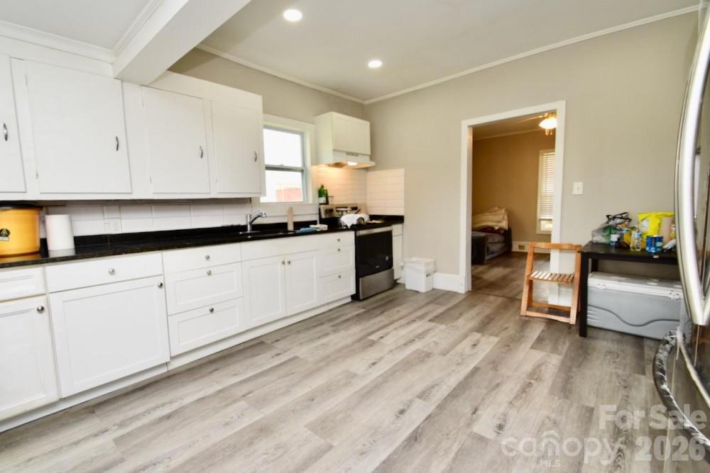 Moving to Gastonia? This freshly updated gem is ready for its next chapter! The current owner has revitalized the space with fresh paint and durable luxury vinyl plank flooring that flows seamlessly throughout the entire home. Step inside to a spacious living room featuring a charming (decorative) closed-off fireplace—perfect for cozy vibes. The heart of the home is the massive eat-in kitchen, boasting crisp white cabinetry, classic white subway tile backsplash, and convenient laundry hookups. The layout offers unique flexibility with two bedrooms connected in a tandem style (walk through one to reach the other). There is an additional flex room with its own private entrance directly from the massive backyard deck, making it an ideal guest suite or home office. The current owners use this space as a bedroom. Additionally, all three bathrooms have been fully renovated with new vanities, toilets, and stylish tub surrounds. Outdoor lovers will also obsess over the oversized deck that spans the entire length of the house, overlooking a generous backyard.