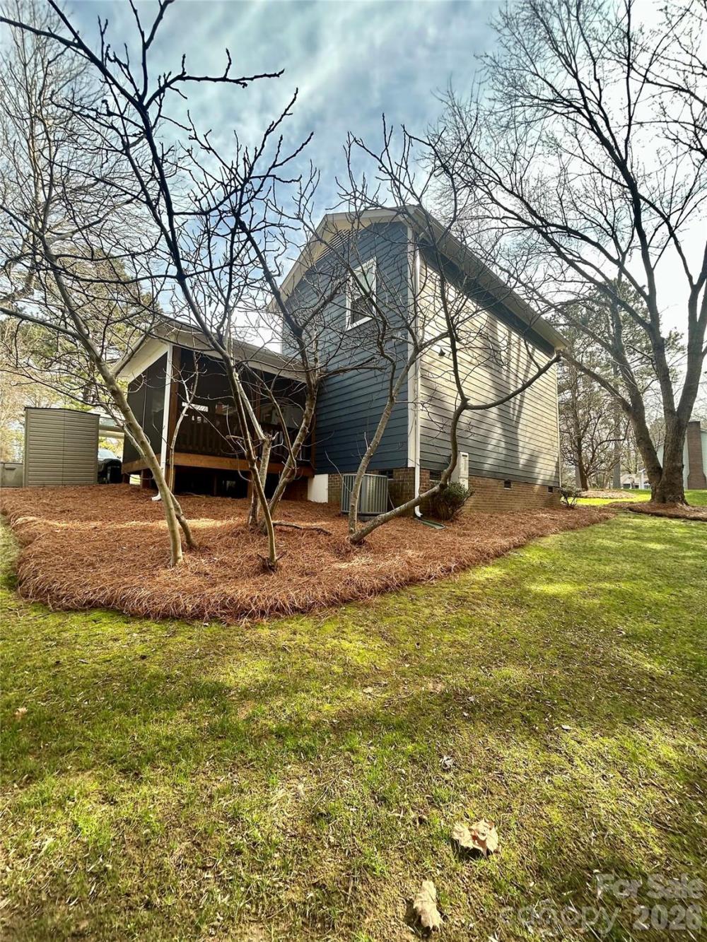 Welcome to this inviting 3-bedroom, 2-bath home in the established Governor Square community—where charm, space, and location come together beautifully. Start your mornings on the classic rocking chair front porch and wind down in the added screened-in back porch, perfect for enjoying Carolina evenings year-round. Inside, the vaulted living room ceiling with an architectural beam creates an airy, open feel, while the fireplace adds warmth and character to the heart of the home. The primary suite is conveniently located on the main level, offering comfort and privacy. Two additional bedrooms provide flexibility for guests, a home office, or hobbies. Situated on a well-landscaped .29-acre corner lot with 2 fruit producing fig tree, the property offers both curb appeal and functionality. A matching storage shed conveys, providing extra space for tools or outdoor equipment. With no HOA and located in a quiet, well-established neighborhood in a growing area near downtown Gastonia, this home offers both freedom and convenience in one desirable setting!