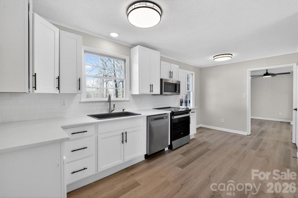 Fresh updates and a clean, modern feel define this beautifully refreshed 3 bedroom, 2.5 bath home. The interior features fresh paint, new LVP flooring, and new carpet, creating a bright and cohesive living space throughout. The kitchen stands out with updated cabinetry, a subway tile backsplash, and stylish new light fixtures that add both function and design. Bathrooms have been thoughtfully refreshed for a crisp, updated look. Spacious living areas offer great natural light and comfortable flow, while the exterior showcases fresh paint and inviting curb appeal. With its blend of modern finishes and practical layout, this home offers move-in ready comfort and everyday livability.