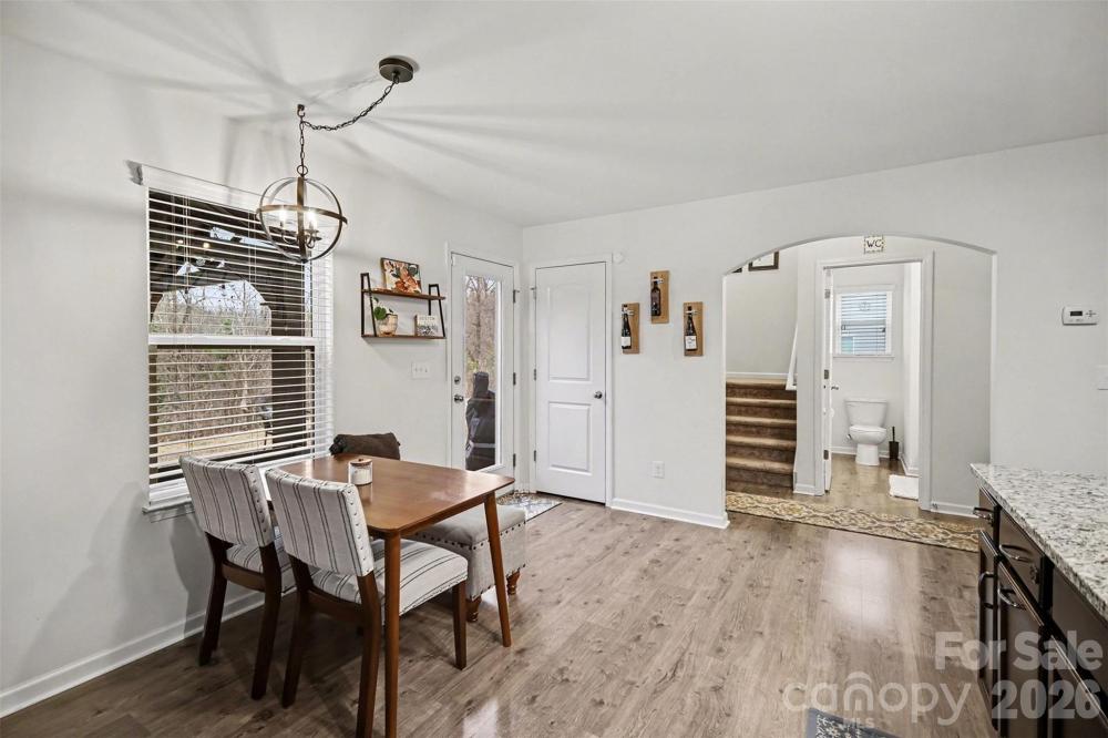 Don't miss this meticulously maintained, bright home nestled in a cul-de-sac, backing to a serene green space with a picturesque creek. Enjoy a wide backyard perfect for entertaining, complete with a patio and charming gazebo—ideal for relaxing or hosting gatherings. This less-than-10-year-old home features 3 bedrooms and 2.5 bathrooms with a desirable open-concept floor plan designed for comfortable everyday living. Beautiful plank flooring flows throughout the main living areas, complemented by granite countertops in the kitchen. Abundant natural light fills the home, enhancing the spacious and inviting feel. Pride of ownership shines throughout with thoughtful care and upkeep. Located in a sought-after community offering scenic walking trails, a clubhouse with fitness center, community pool, and playground—providing amenities for every lifestyle.