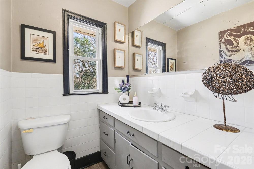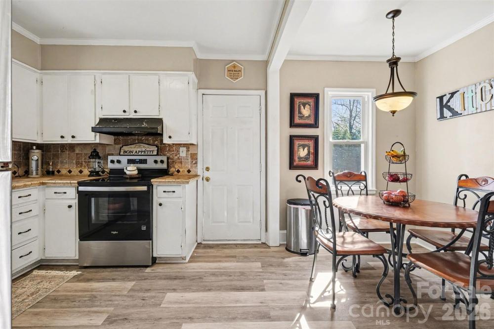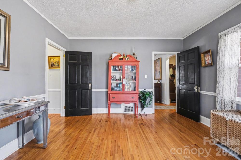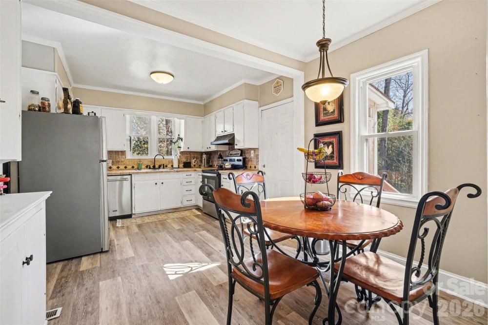Absolutely charming historic home in the beautiful Brookwood neighborhood! Come be a part of this extremely social, tree lined neighborhood in the heart of Gastonia! This home offers original hardwoods throughout with brand new LVP in the kitchen, downstairs bathroom and enclosed porch. Recent foam insulation installed in the walls and blown insulation in the attic, new furnace installed 2025 and A/C was done in 2020, as well as new gutter guards. There are built ins in the dining room and a lovely sunroom collecting so much natural light to enjoy! There is a room that is flex space and can be used in a multitude of creative ways. The basement space is huge, so much storage even when the one car garage is being used! Also, there is a full sized safe in the basement. A creek boarders the property. There is more yard down below the retaining wall. Located walking distance from downtown Gastonia, breweries, coffee shops and restaurants, the Fuse district and 20 min from Charlotte Douglas Airport.There was a recent Radon test performed showing the low results, available and will help buyers save money! Fireplaces being sold as is. Sellers have never tried them.