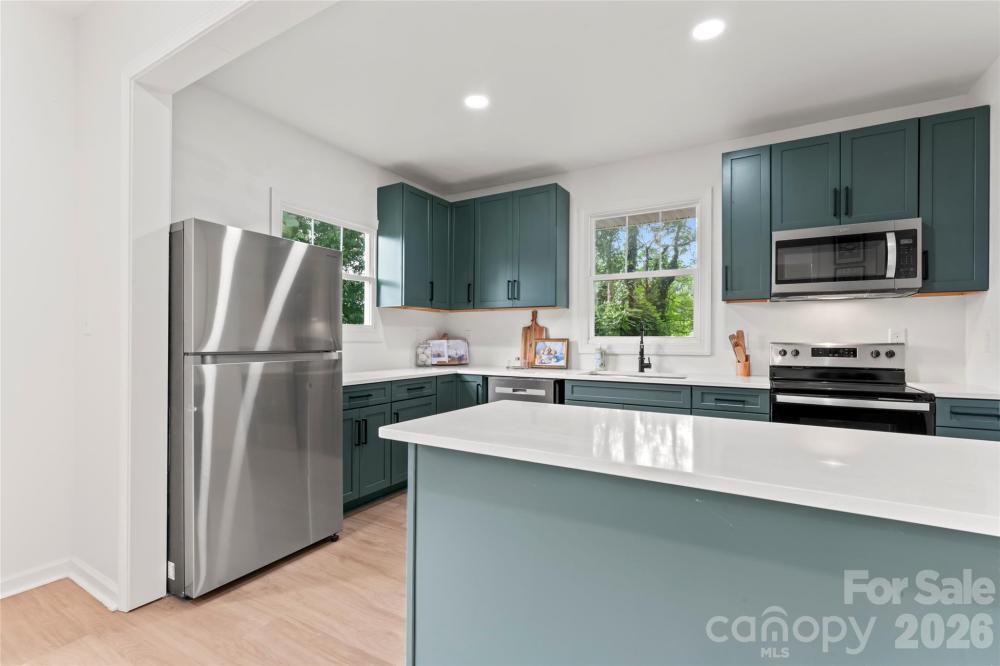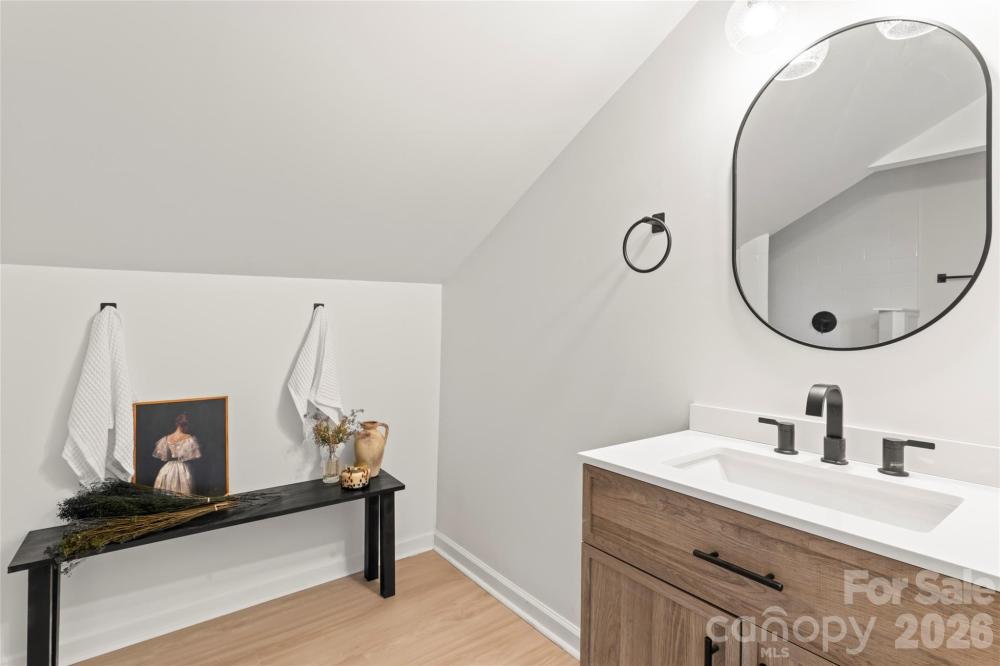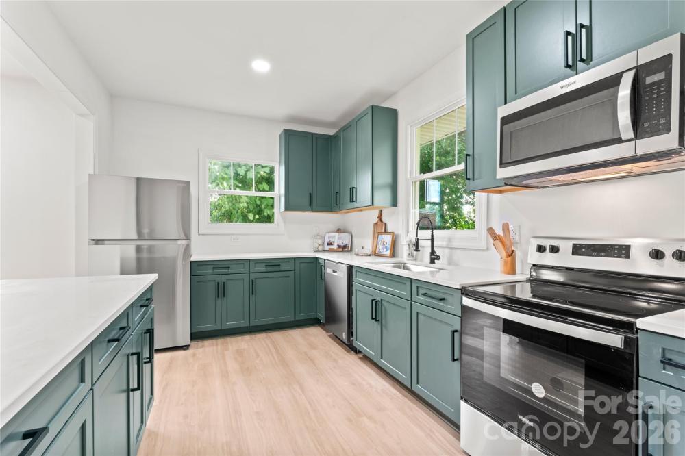 Discover a piece of Gastonia's history with a modern twist. This century-old residence has been completely transformed from the studs up, offering a fresh and stylish sanctuary. From the moment you walk in, sunlight welcomes you through the space. The living room is complete with a charming historic decorative fireplace and mantle. The formal dining room flows into a standout kitchen with white quartz counters, on-trend green cabinets, and stainless steel appliances. An oversized laundry room off the kitchen was redesigned for added functionality. The main floor primary suite is flooded with natural light and offers a spacious haven with an expansive en-suite shower paired with a free standing soaker tub and a walk-in closet. The private rear staircase leads to the second floor, offering 3 additional bedrooms with deep walk-in closets and 2 full bathrooms including a cleverly designed Jack and Jill bath for functionality. This home stands out with its thoughtful touches courtesy of an expert interior designer. Set on an expansive lot, enjoy outdoor living with a charming and deep front porch and a back deck perfect for entertaining. Enjoy close proximity to nearby eateries, catch a Gastonia Ghost Peppers baseball game, and explore the vibrant FUSE District—a buzzing new entertainment hotspot. This home is a well crafted blend of classic allure and modern convenience.