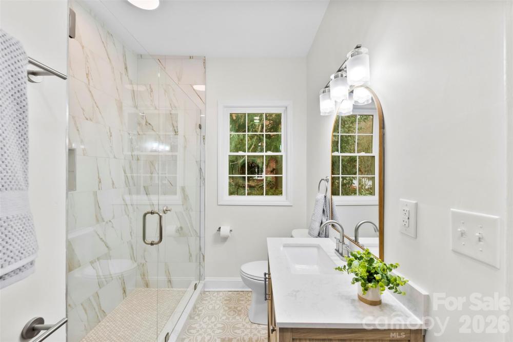 Step into the perfect blend of historic charm and modern luxury in this fully renovated 1924 Craftsman-style 3-bedroom, 2-bath home! With 1,604 sq ft of beautifully updated living space, this home welcomes you with tall ceilings, wide hallways, and the kind of timeless character only a century-old residence can offer. Set on half an acre on a quiet, wide, and safe residential street, the property immediately impresses with its delightful 330 sq ft front porch—the ideal spot for morning coffee, evening wine, or relaxing with friends and neighbors. Inside, you'll fall in love with the brand-new kitchen featuring new quartz countertops, new cabinets with soft close doors and drawers, new appliances, and LVP flooring, complemented by stunning refinished original hardwoods that flow throughout the rest of the home. Just off the kitchen and dining area, a spacious 230 sq ft deck offers the perfect setting for hosting family events or enjoying the big game with friends. Your luxurious primary suite includes an elegant walk-in shower and the convenience of a stackable washer and dryer located right in the bathroom. Thoughtful updates continue throughout the home with all-new plumbing, a new hot water heater, and a meticulously encapsulated 400 sq ft basement complete with a brand-new French drain system, sump pump, and dehumidifier—ideal for storage or hobby space. Enjoy the peace and privacy of the spacious backyard, surrounded by trees and natural foliage. A generous driveway and large concrete pad provide ample parking and a fantastic foundation for a future garage or workshop. All of this is located just minutes from the desirable FUSE District, where you can enjoy popular dining spots like Webb Custom Kitchen, Barrister’s at The Esquire Hotel, and the brand-new Waterbean Coffee. To top it off, all appliances are included, and our preferred lender is offering a $2,000 credit to help make this home yours. This stunning Craftsman has it all—character, updates, location, and value. What are you waiting for? Book your showing today!