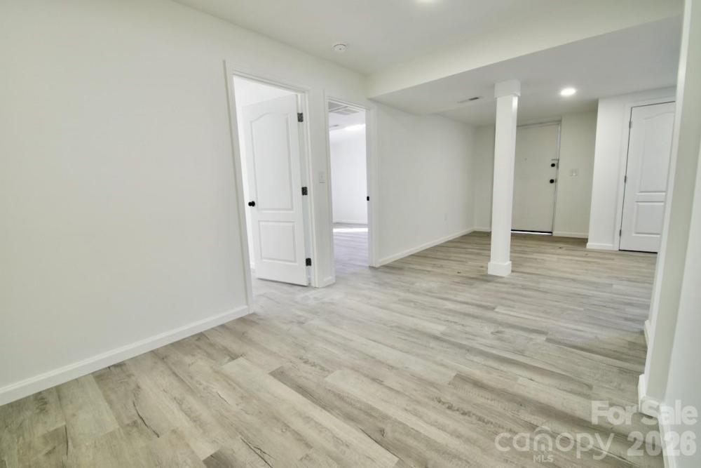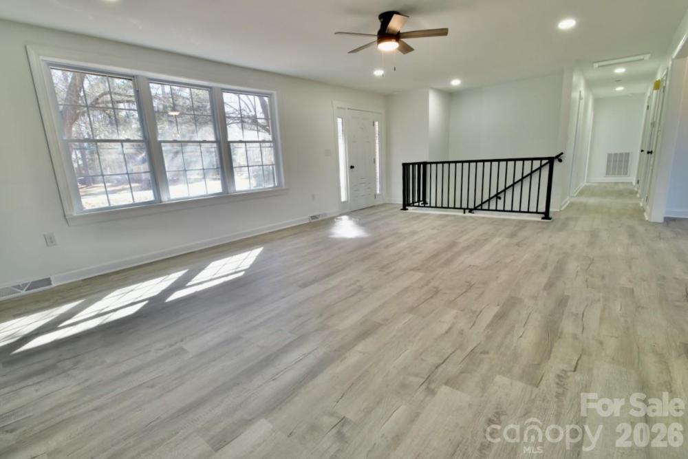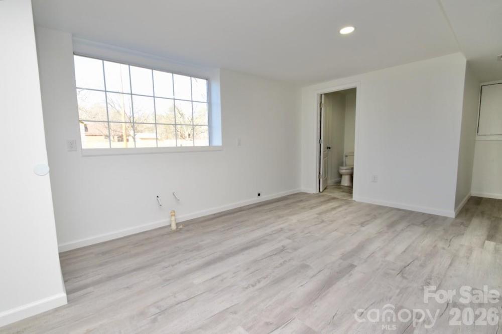 Discover this stunning, renovated full-brick ranch sitting on a private 1.21-acre lot with no HOA! Located in South Gastonia, this home perfectly blends classic durability with modern designer finishes, including a fully finished basement. The main level features a bright, open-concept layout designed for effortless entertaining. Durable LVP flooring flows through the primary living areas, anchored by a beautiful brick fireplace. The kitchen is certainly a cook's dream, boasting brand-new white cabinetry with elegant crown molding, sleek granite countertops, a center island, and new stainless steel appliances. A highlight of the main living area is the interior open staircase, which provides seamless and stylish access to the lower level while maintaining the home's airy feel. Retreat to the primary suite, where you will find a luxurious bathroom featuring ceramic tile flooring and a custom walk-in shower with a designer tile niche. The secondary bathroom on the main floor is equally impressive, offering a tile tub surround and tile flooring. The expansive finished basement significantly increases your living space, offering a large open living area and two versatile flex rooms—perfect for a home office, gym, or playroom. The third full bathroom is located in the basement and showcases premium craftsmanship with a tiled shower featuring built-in tile seating, a custom niche, and ceramic tile flooring. Above all, enjoy the freedom of nearly an acre of land in a prime Gastonia location with easy access to local amenities. This move-in-ready gem offers the space, upgrades, and privacy you have been searching for.