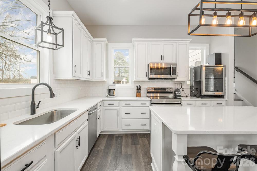 Welcome home, where modern meets country living. Custom designed and tastefully nestled on a flat 1 acre lot outside of city limits. This beautiful 3-bedroom, 2.5-bath home offers picturesque mountain and farmland views, NO HOA, and proximity to Crowder Mountain from the back porch. Boasting approximately 2,000 sqft. with 19'4" ceilings in the 2-story great room. 10' ceilings throughout the remainder of the 1st floor, custom 8' interior & exterior doors, and 7' windows in the lower level of the great room. The custom kitchen includes white linen glazed painted maple wood cabinets with soft close full extension drawers. A large island with white quartz countertops, white beveled tile backsplash, and stainless steel appliances. The property provides added flexibility with a convertible bonus space above the 2 car carport, ideal for future expansion or recreation. Enjoy privacy, outdoor space, and freedom for recreational useāall just minutes from nature and 40 minutes from uptown. Get in just in time before the one billion dollar casino resort is finished being built in spring 2027. Attracting people to the Kings Mountains and Gastonia area. Bring your vision and make it yours.