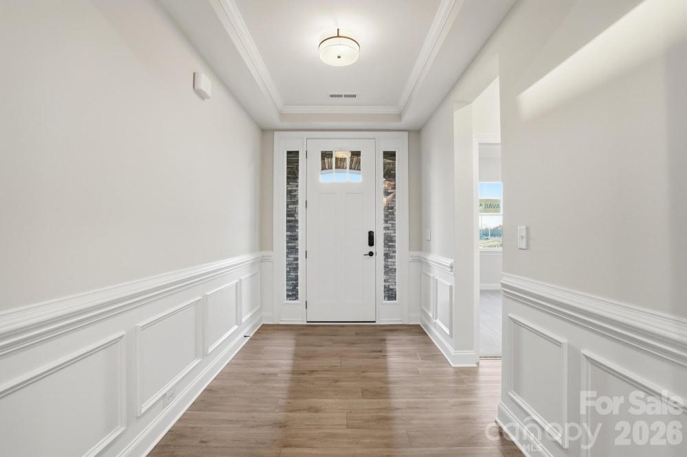 GRAND OPENING of Founders Landing, an age-restricted community close to shopping, dining and other conveniences. This 1.5-story Avery plan features 3 bedrooms, 3 full baths, and more than 2,500 square feet of living space. The designer kitchen has white cabinets, quartz counters, geometric tile backsplash, stainless range hood, and stainless appliances, including a gas cooktop. The breakfast area looks out onto the rear covered porch. The primary bath features a shower with semi-frameless door, while the second bath on the main has a tiled, 5-ft, walk-in shower, and the upstairs bath has a tub/shower combo. The primary bedroom and one other bedroom are on the main, and the upper floor has an additional bedroom along with a full bath, large loft & unfinished storage. The main floor also has a foyer with tray ceiling, formal dining room with wainscoting, and laundry room with clothing "pass-thru" from the primary closet. The family room features a Cosmo, direct-vent gas fireplace with shiplap feature wall and wood mantel. Make an appointment today to find out more about this exciting new community!