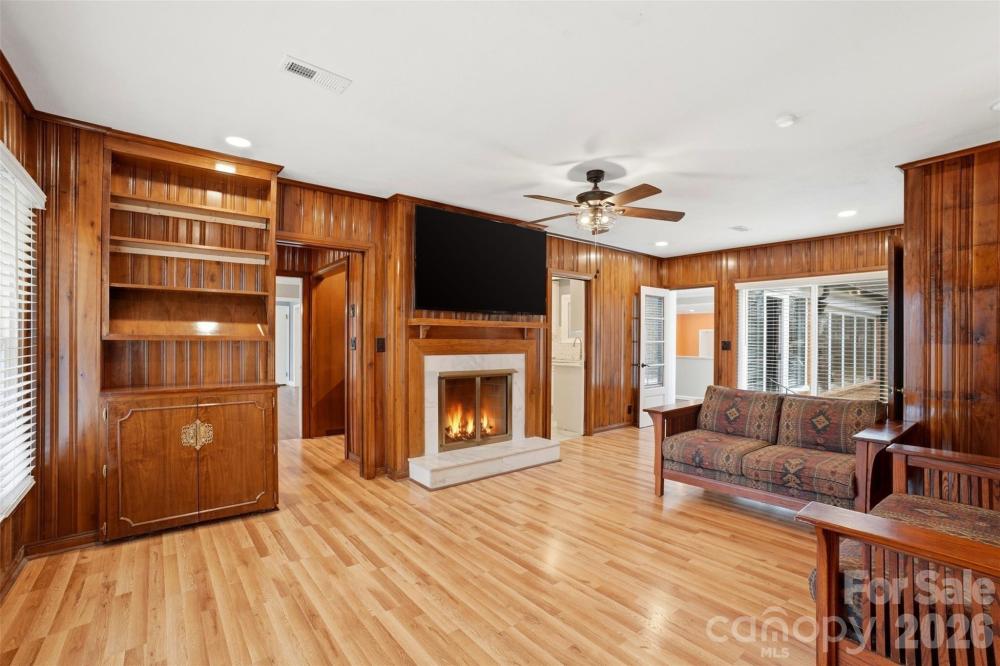 This full-brick ranch on over ½ acre blends modern upgrades with thoughtful custom features. Refinished hardwood floors (sanded and stained), fresh interior paint throughout the whole home, and recessed lighting create a bright, updated feel throughout. Two-zone HVAC system, blown-in attic insulation, ceiling fans, and a new water heater were updated in 2024 to ensure year-round comfort. The completely remodeled kitchen features new cabinetry, quartz countertops, tile backsplash, and all-new KitchenAid appliances. Custom touches continue in the office with built-ins and in the family room with a window seat with storage and added floor receptacles. Rear bedrooms were reconfigured into two private rooms with new closets. The carport, sunroom and a new game room have been fully framed and finished with drywall and custom glass accents. The utility room offers butcher block counters, a consolidated main electrical panel, generator transfer switch, and attic access. The garage boasts finished walls and ceiling, updated lighting and electrical, built-in shelving, a new door and opener, plus staircase access to second-floor storage with blown-in insulation. Brand new exterior updates include painted brick and trim, gutter guards, French drain and concrete pad and generator pad. Thoughtfully upgraded and truly turnkey—schedule your showing today!