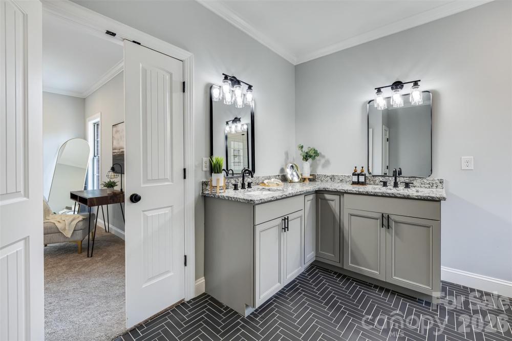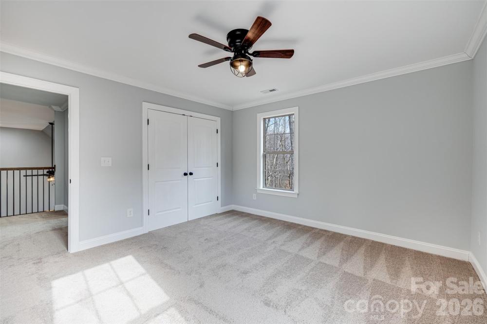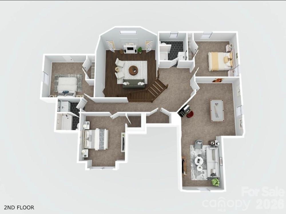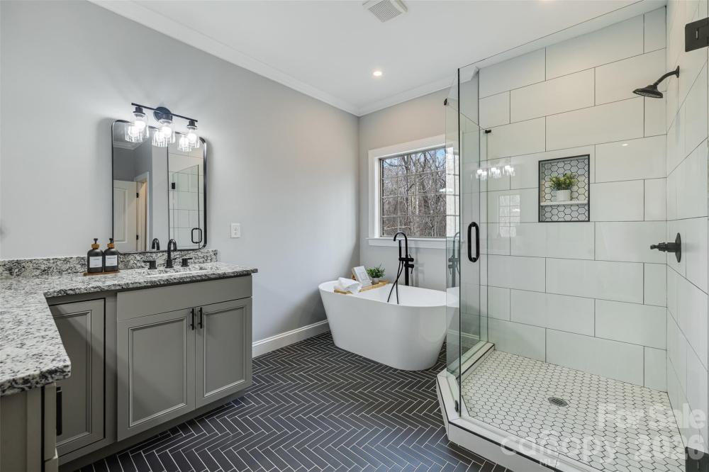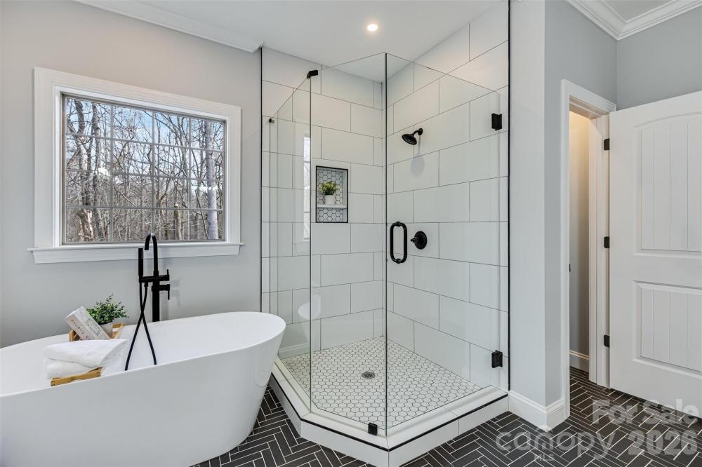 Welcome to this beautifully designed home on a quiet cul-de-sac. This property offers privacy, space, and thoughtful design. The living room features a dramatic cathedral ceiling and gas fireplace, opening seamlessly to the kitchen with granite countertops, classic white tile backsplash, and an open-concept layout ideal for entertaining. The main-level primary suite is a private retreat with walk-in closet, and a spa-inspired bath showcasing sleek finishes, a freestanding soaking tub, and a large walk-in shower. Upstairs includes three spacious bedrooms, a large bonus room, and two full bathrooms, offering flexible living space. The basement is framed, wired and ready for future expansion with tall ceilings and safe room option providing endless potential. Enjoy peaceful outdoor living. From your back deck you are met with a private wooded lot. Just a short walk to the beautiful creek provides the perfect spot for a future firepit and quiet evenings listening to the sound of the water. The majority of this 1.49 acre lot offers privacy sitting down away from the road and tucked away! From the side yard and into the woods there is so much to offer - clearing a portion to create a large flat yard, keeping it wooded or both. This home offers a blend of privacy, luxury, and modern design in an exceptional location.