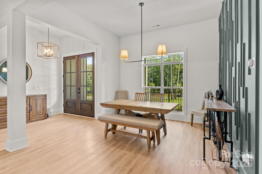 Welcome to this stunning custom-built ranch with a spacious bonus room upstairs that can easily serve as a 4th bedroom. Thoughtfully designed with high-end finishes and a flowing open-concept layout, this home offers the perfect balance of everyday functionality and luxurious living. From the moment you arrive, you'll be captivated by the curb appeal with beamed columns, stone accents and a charming front porch welcome you through elegant double doors into a beautifully crafted interior. Just off the foyer, a formal dining room features a bold accent wall, setting the tone for the style and quality found throughout. The heart of the home is the vaulted family room, where wood accents, a center beam, and a brick fireplace with custom built-ins create a cozy and inviting space. A full wall of glass with sliding doors leads to the incredible Eze-Breeze all-seasons porch seamlessly blending indoor and outdoor living. The chef’s kitchen is a true showstopper, complete with a massive center island with farmhouse sink, gas range under a custom alcove, and stylish shelving flanking the cooking space. Don’t miss the hidden walk-in pantry discreetly located beside the refrigerator! A split-bedroom layout provides privacy for all. Two generous secondary bedrooms share a unique wet area design, each with its own sink and walk-in closet. The private primary suite is a true retreat—double wood doors open to a spa-inspired bath with soaking tub, oversized tiled shower, dual vanities, and luxurious finishes. Additional highlights include a large laundry room with sink and folding counter, a pocket office ideal for remote work, and a versatile upstairs bonus room perfect as a 4th bedroom, guest suite, or media room. Set on nearly 1.4 acres of manicured lawn backing to woods, the outdoor living is just as impressive—relax or entertain on the custom patio and enjoy the peace and privacy of your own backyard sanctuary. This home truly has it all—style, space, and serenity. Come experience it for yourself! Nearly 200k in upgrades since the home was purchased including: hardscape, sod, irrigation, yard drainage, LeafGuard, Eze Breeze porch, garage epoxy plus built-in storage; hardwired speakers, tvs & thermostats; whole house water filtration; bonus room built-in bench; and the list goes on!!