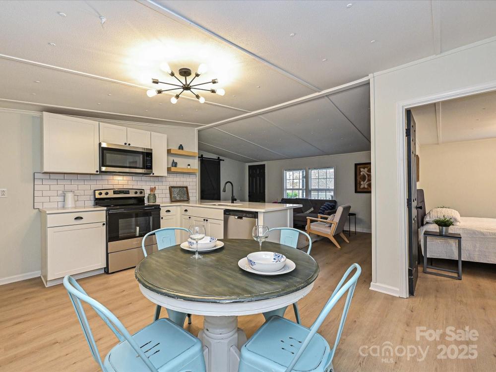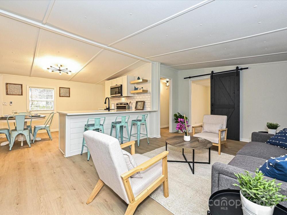 FULLY RENOVATED CHARMER with NO HOA! Tucked in a peaceful country setting just minutes from Rt. 321 and zoned for acclaimed Lincoln County schools, this 3 Bedroom / 2 Bath property delivers modern comfort with timeless farmhouse bungalow style on a beautifully landscaped 0.59-acre lot. Upgrades include a durable metal roof, new HVAC, new water heater, new vinyl siding, new gutters, & new LVP & carpet flooring throughout. The bright, on-trend kitchen features all new white shaker cabinetry, new white quartz countertops, new subway-tile backsplash, and new stainless steel appliances, vaulted ceilings, complemented by crisp black light fixtures and matching black door and cabinetry hardware. Bathrooms shine with new vanities, countertops, commodes, shower doors, plumbing fixtures and mirrors for a fresh, turnkey feel. Designer touches abound—board-and-batten and shiplap accent walls, sliding barn doors, and custom built-in shelving elevate everyday living. Enjoy two bungalow-style porches in front and back: the front porch offers a brand-new swing and is just awaiting your rocking chairs and glass of lemonade, while the rear porch is perfect for morning coffee or sunset relaxing while grilling out and watching the kids play. Outside, mature crepe myrtles adorn the front and rear of property, hydrangeas, and a variety of seasonal flowers frame the yard, which also includes a brick-built charcoal BBQ, a refreshed matching 12'x16' shed ideal for storage or a workshop, and a convenient carport along a tree lined driveway. Combining a quiet retreat vibe with quick access to commuter routes, shopping, and dining, this move-in-ready home blends style, substance, and low-maintenance living—inside and out. Hurry as once you see this one it will go fast!