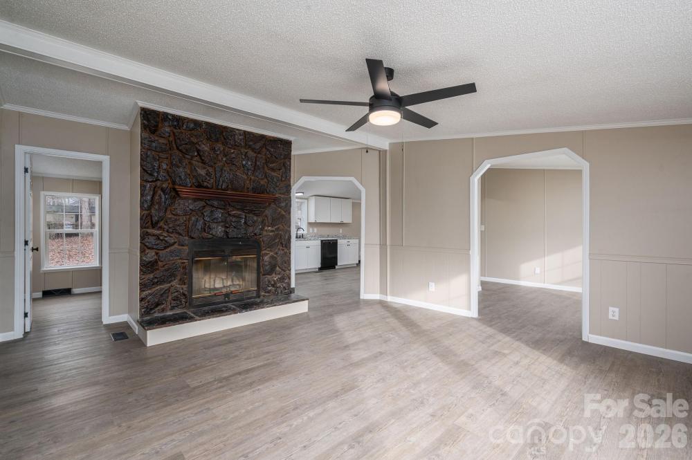 Welcome to a HUGE totally remodeled home with a large backyard ready for its new family! The home gives a warm and cozy yet clean feel with the warm paint colors, luxury vinyl plank flooring paired with the dark rock fireplace. The home is listed as a 3 bedroom home due to septic records however the home actually came from the factory with 4 bedrooms and an additional flex space for an office or 5th bedroom. 3 full bathrooms including one jack and jill make for ample room for everyone to get ready at once! Additional rooms include huge eat in kitchen, formal dining room or den, living room and laundry room. Also to note are a brand new roof and 3 brand new decks as the house has 3 entrances. One large deck out back, a front entrance and a side entrance. The spacious kitchen has brand new white shaker cabinets just as the 3 bathroom do. Appliances include microwave, dishwasher, electric range and as a Christmas bonus the washer and dryer are included as well! All kitchen appliances are brand new, washer dryer are approx 3 years old. Ready to have some more space or a home that has been has been remodeled all at an affordable price? Look no further! Make your appointment today! Right across the Lincoln County line in Gaston County.