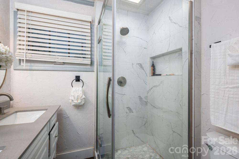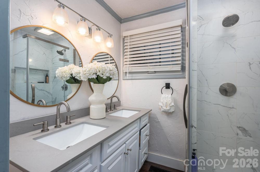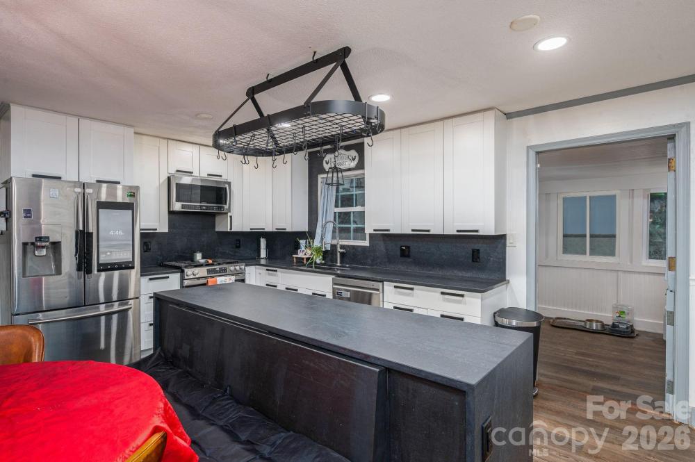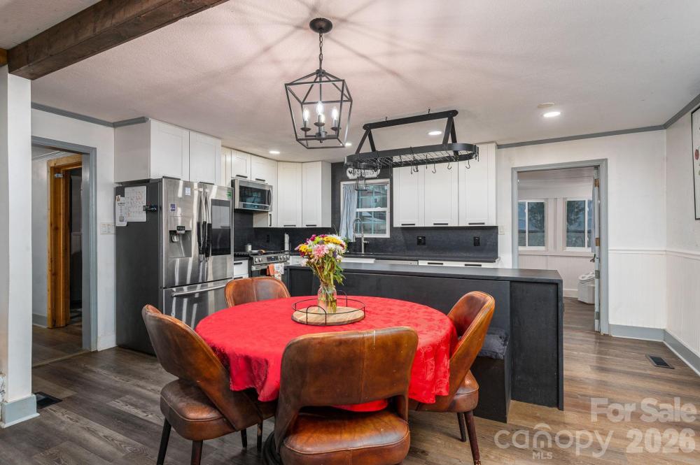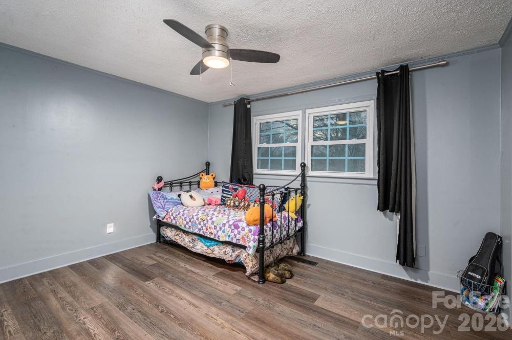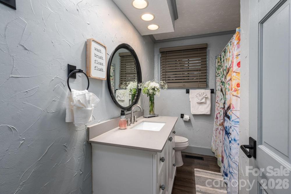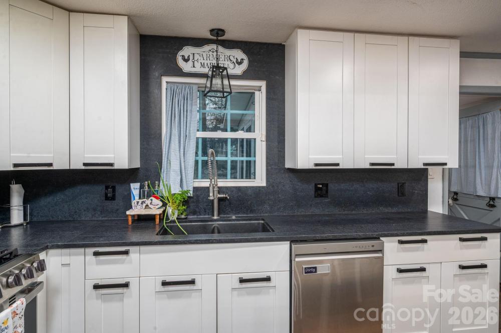 Four-bedroom, three full bath home with a fully fenced backyard and extensive updates. The home includes two primary bedroom suites (one downstairs and one upstairs) and a large laundry room with gas or electric dryer hookup. The owner is using one bedroom as a pantry. A Dutch door connects the kitchen to the sunroom, and the property includes a generator hookup. This unique home was featured on Montel Williams’ Military Makeover show. A 21-panel solar system and roof were installed in 2018. The home was fully remodeled in 2020, including a Goodman HVAC system with all new ductwork, new windows and doors, updated flooring throughout, quartz countertops, backsplash, and bathroom counters, stainless steel appliances, Rayno window film, a Lorex security system with no monthly fee which includes cameras for a 360 degree view of the property, garage floors were refinished and cabinets installed by Garage Experts, tankless water heater, and so much more. A gas oven was added in 2025. The backyard includes a greenhouse installed in 2020, Vego raised garden beds with trellises added in 2024, an outdoor planters bench with sink, a storage building, and a chicken coop with run that will remain. Chickens may or may not convey at seller’s discretion. The flock consists of laying hens producing brown and white eggs, including rare Lavender Orpingtons and other breed. Established bushes/plants that remain include blueberry, blackberry, raspberry, elderberry, comfrey, mint, a peach tree, and a banana tree. Pellet stove in living room works in manual mode but not auto mode. Seller thinks it might need an auger. Mini-split in the workshop is not working, seller thinks it needs freon.