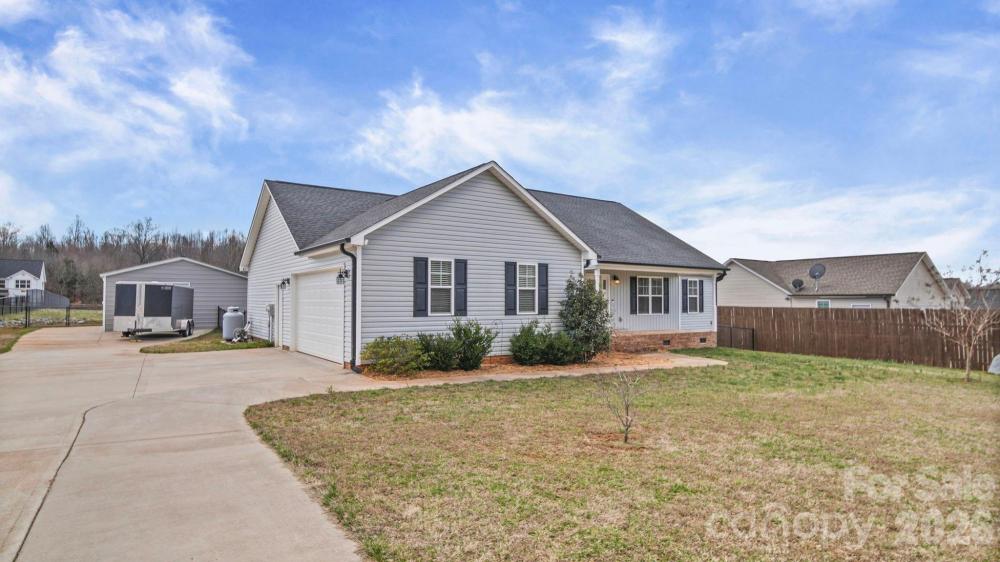 Welcome to this charming ranch home, situated in a rural setting, just minutes away from Hickory and downtown Lincolnton, with convenient access to Highway 321. This home features an open floor plan that seamlessly connects the living, dining, and kitchen areas, making it ideal for both relaxation and entertaining. The kitchen boasts modern grey cabinets, offeringa functional island for meal preparation. Retreat to the spacious primary suite, featuring a large walk-in closet and a luxurious primary shower and soaker tub. Designed for functionality, the home features a split bedroom plan, ensuring privacy for family members and guests alike. The detached garage offers ample space for a workshop, welding, or mechanics work, making it perfect for the hobbyist. Additionally, there is room for RV parking to accommodate your outdoor adventures. This property presents a unique opportunity to enjoy country living while being close to urban amenities.