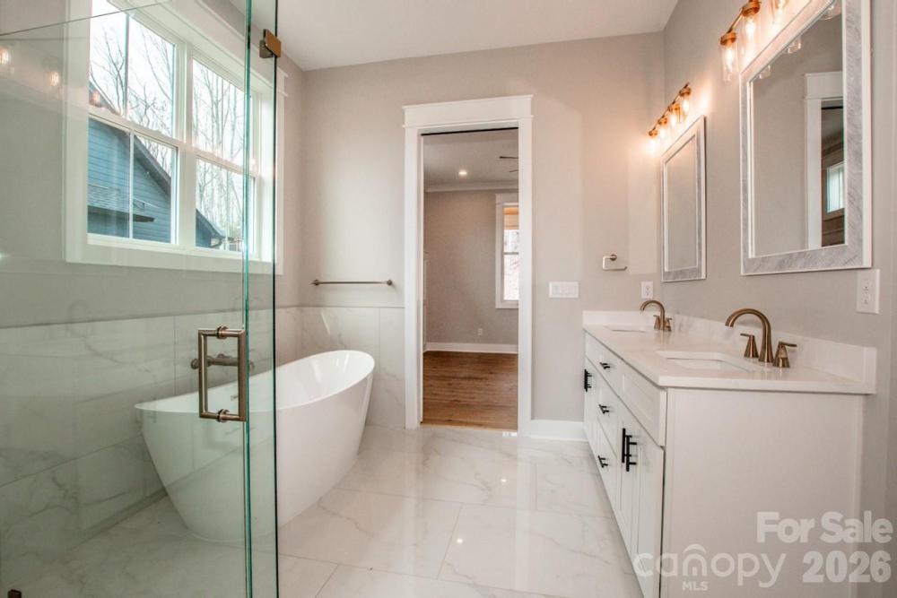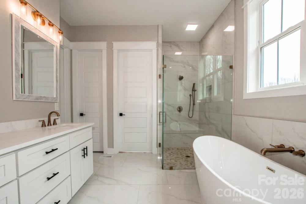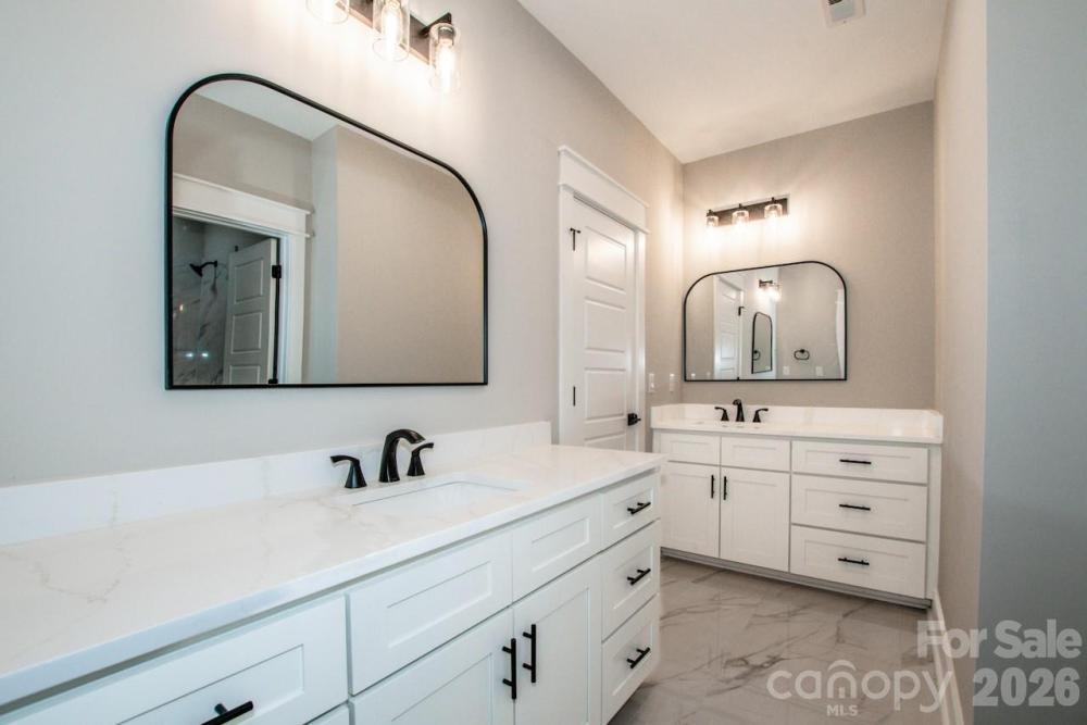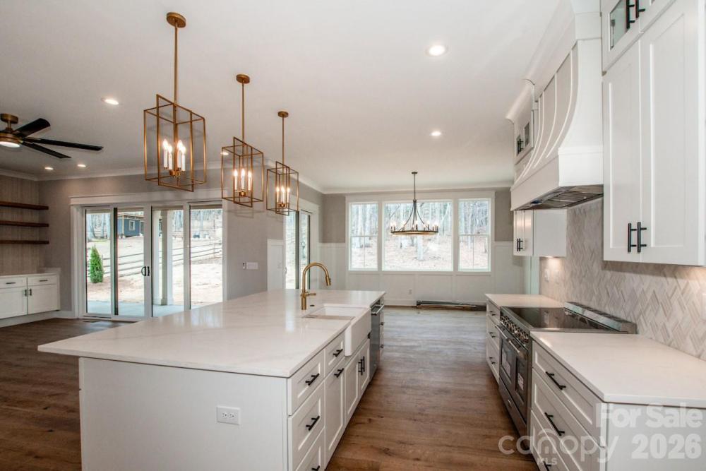 You'll be immediately impressed upon entering this quality built new construction modern farmhouse, complete with all the bells and whistles on nearly an acre – No HOA and room for a pool! This stunning 4-bedroom, 3,672-sq-ft home has an open floor plan, is flooded with natural light and is perfectly situated on a private 0.93-acre wooded lot, on a beautiful picturesque dead-end street, in the highly desirable North Lincoln School District, just minutes from North Lincoln High School. Designed with exceptional construction and attention to detail, this quality-built home blends timeless craftsmanship with elegant modern style and an open, light-filled layout perfect for everyday living and entertaining. Inside, you’ll find crown molding, wainscoting, engineered hardwood floors, oak stair treads with LED lighting and 8-foot interior doors throughout. Every room showcases custom trim work, built-ins, designer lighting and high-end finishes, creating a sense of sophistication and warmth. The chef’s kitchen is the true heart of the home, featuring floor-to-ceiling white soft-close cabinetry with upper glass doors, beautiful tile work, brushed gold fixtures, a white farmhouse sink and an oversized 9x5 shaker-style island with seating and storage. A professional 48-inch range with double oven and a direct vent hood anchors the space, while the adjoining scullery includes additional shaker cabinetry, a sink, dishwasher, tile backsplash and pocket door—providing the perfect hidden prep area for entertaining. Beautiful backsplashes, custom shelving and a spacious dining area complete this impressive culinary space. The family room is warm and inviting, highlighted by a gas fireplace with a gorgeous vertical fluted accent wall, custom wood mantel and a stunning ceiling fan, all overlooking the tranquil wooded backyard. The main-floor primary suite offers a luxurious retreat with a trim accent wall, ceiling fan and spa-like bath featuring a freestanding soaking tub, walk-in tiled shower, dual vanities and a large walk-in closet with custom shelving. A laundry room connects to both the primary suite and hallway, offering a sink, upper and lower cabinetry, and ample storage. An office/flex room with double glass doors and backyard views provides the perfect space for working from home, hobbies or reading. A main-level full bath with a walk-in shower is conveniently located for guests or multi-generational living. Upstairs, you’ll find three spacious bedrooms, a loft with built-in desks and bookcases, bonus room and a second laundry area for added convenience. Two of the bedrooms are connected by a thoughtfully designed Jack-and-Jill bathroom, where each bedroom enjoys its own private vanity and toilet, with a shared tiled tub/shower between. The third upstairs bedroom has access to a beautiful hall full bath with a tiled walk-in shower, ideal for guests. The versatile bonus room provides space for a media room, gym or play area, while the loft is perfect for studying, gaming or relaxing. Outdoor living shines in this home’s spectacular backyard retreat. The covered back patio features a stained wood ceiling with ceiling fans, providing a stylish place to relax or entertain. The expansive, level yard offers ample space for a pool, garden or play area, surrounded by the peaceful privacy of mature trees. Professional landscaping includes seed, straw and shrubbery. Additional highlights include black & white windows, additional side entry door, brushed gold fixtures in the kitchen & primary suite, black fixtures in secondary baths, custom trim work and built-in details throughout that elevate this home’s timeless design. The side load finished garage has been wired for electric vehicle charging. This home offers the perfect blend of luxury, privacy, and convenience. Conveniently located minutes from Hwy 150 & Hwy 16 offering easy access to Denver, Lincolnton, Mooresville, medical, restaurants, golf and the airport.