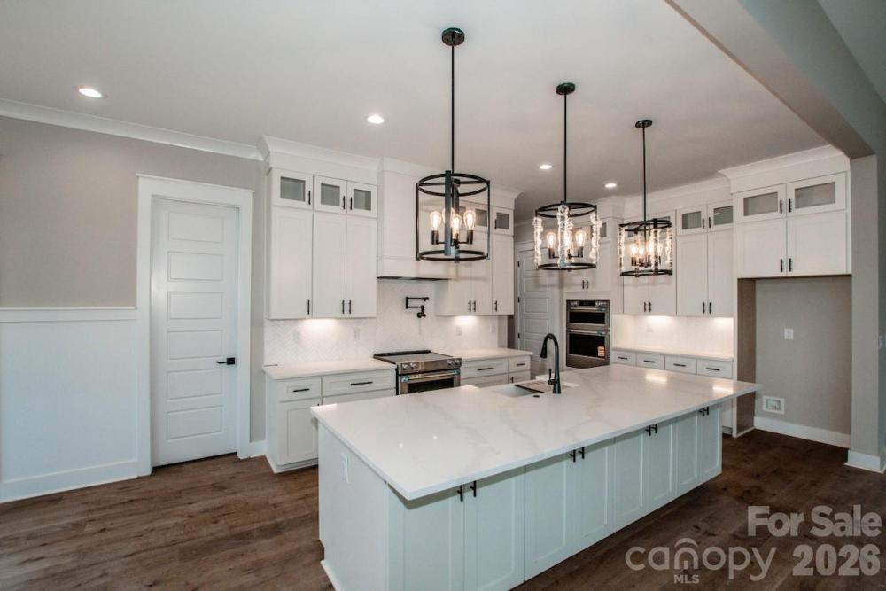 You'll be WOWED upon entering this spectacular quality built custom 3,467-square-foot home w/soaring ceilings, situated on a private 0.90-acre wooded lot, on a quiet dead-end street within the desirable North Lincoln School District. With no HOA, an open-concept design and beautiful wooded views, this home combines timeless craftsmanship with refined modern finishes in a setting that feels private yet convenient to everything. Step inside to find an open floor plan flooded with natural light, showcasing exceptional attention to detail & construction throughout. Nothing spared on this quality-built home featuring crown molding, 8ft doors,wainscoting,quartz countertops,engineered hickory hardwood flooring, tile surrounds, extensive custom trim work, oak stair treads with LED lighting and designer tile flooring. Every space is thoughtfully designed to blend elegance, comfort & functionality. The chef’s kitchen is truly the heart of the home. It offers floor-to-ceiling custom cabinetry, walk-in pantry, oversized island w/storage, seating & stunning quartz countertops that complement the rich finishes throughout. A wall oven and microwave combo with air fryer and dining area make this kitchen ideal for both everyday living and entertaining. With its open sight lines, amazing ceiling heights and abundant windows, the kitchen seamlessly connects to the living and dining spaces, keeping everyone connected while offering the perfect backdrop for gatherings. The family room is a showstopper—featuring a gas fireplace with a gorgeous fluted vertical tile accent wall, custom wood mantel and built-in cabinetry on each side. The spectacular 12 ft vaulted ceiling adds warmth and architectural character, while a wall of windows brings in an abundance of natural light and showcases views of the peaceful, wooded backyard. The main floor is anchored by a luxurious primary suite featuring a tray ceiling, ceiling fan and elegant spa-like bath complete with a freestanding soaking tub, large walk-in tiled shower, dual vanities and a walk-in closet with custom shelving. An additional main-level bedroom provides flexibility for guests or family members, while a dedicated office/flex space offers a quiet area for work or hobbies. The laundry room, conveniently located on the main level, includes built-in cabinetry, countertop space and a utility sink for added functionality. Upstairs, you’ll find two additional large bedrooms, each with walk-in closets, a beautiful full bath & spacious bonus room that offers endless possibilities—ideal for a media room, playroom or home gym. Every room is designed with care, maximizing comfort and livability while maintaining the cohesive, elegant style of the home. Step outside and enjoy the thoughtfully designed outdoor living spaces that make this property truly special. The covered back deck features a vaulted stained wood ceiling with a ceiling fan, creating the perfect spot to relax and enjoy the natural surroundings. The expansive, level backyard offers ample room for outdoor activities surrounded by mature trees for privacy. The tall crawl space provides a generous storage area for lawn equipment, outdoor gear or workshop space. The oversized 2 car garage is equipped for electrical vehicle charging. Professional landscaping with shrubs, sod in the front and side yard enhances the home’s curb appeal. This home is conveniently located close to schools, shopping, restaurants, golfing, medical facilities and major routes including Highway 150 and Highway 16, offering easy access to Denver, Lincolnton, Mooresville and the Lake Norman area. Enjoy a peaceful country setting with modern conveniences just minutes away. Every aspect of this home has been designed for those who appreciate fine craftsmanship, attention to detail and the perfect balance of luxury and livability. With its elegant finishes, modern amenities and private setting,this home is perfect. Est completion 3/10/26