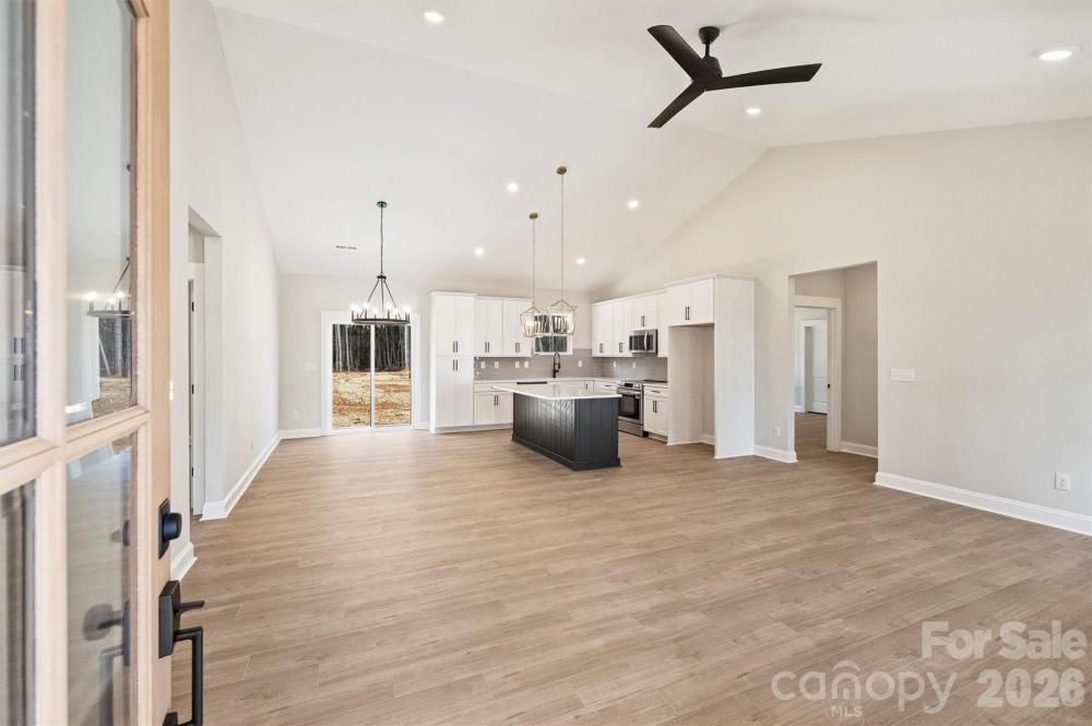 Recently completed and now available, welcome to North Pines—Lincolnton’s newest collection of thoughtfully crafted single-level homes by Brancer Homes. 2271 Lee Lawing Road blends elevated finishes, modern farmhouse charm, and the natural privacy of tree-lined homesites—all just 15 minutes from downtown Lincolnton and convenient to everyday shopping in Sherrills Ford and Denver. The inviting exterior showcases classic brick accents and stained wood front-porch columns, delivering warm curb appeal with a clean farmhouse aesthetic. Inside, the builder’s Modern Farmhouse Designer Package combines crisp cabinetry finishes, curated lighting selections, stylish hardware, and quartz countertops throughout for a fresh yet timeless feel. The open-concept kitchen features a spacious island with pendant lighting and flows seamlessly into the vaulted main living area, creating an airy, light-filled space ideal for both entertaining and daily living. The primary suite highlights a beautifully tiled shower wall and designer finishes that balance comfort with farmhouse-inspired character. Additional features include added recessed lighting, a functional drop zone, and a well-appointed laundry room with upper cabinetry and quartz counters for enhanced storage and convenience. An extended two-car garage with exterior exit door, along with additional driveway parking, adds to the home’s everyday functionality. Now that construction is complete, this home is part of a newly released collection in North Pines—offering a rare opportunity to own move-in ready new construction with elevated design and modern farmhouse appeal in one of Lincolnton’s fastest-growing areas.Additional features include added recessed lighting, a drop zone, and a laundry room with upper cabinets and quartz counter for extra storage and functionality. The home also includes an extended two-car garage with exterior exit door and additional driveway parking, making this layout as practical as it is stylish. Set in a low-maintenance community with peaceful rural surroundings, this home pairs craftsmanship, modern design, and timeless farmhouse appeal—perfectly suited for life in Lincolnton.