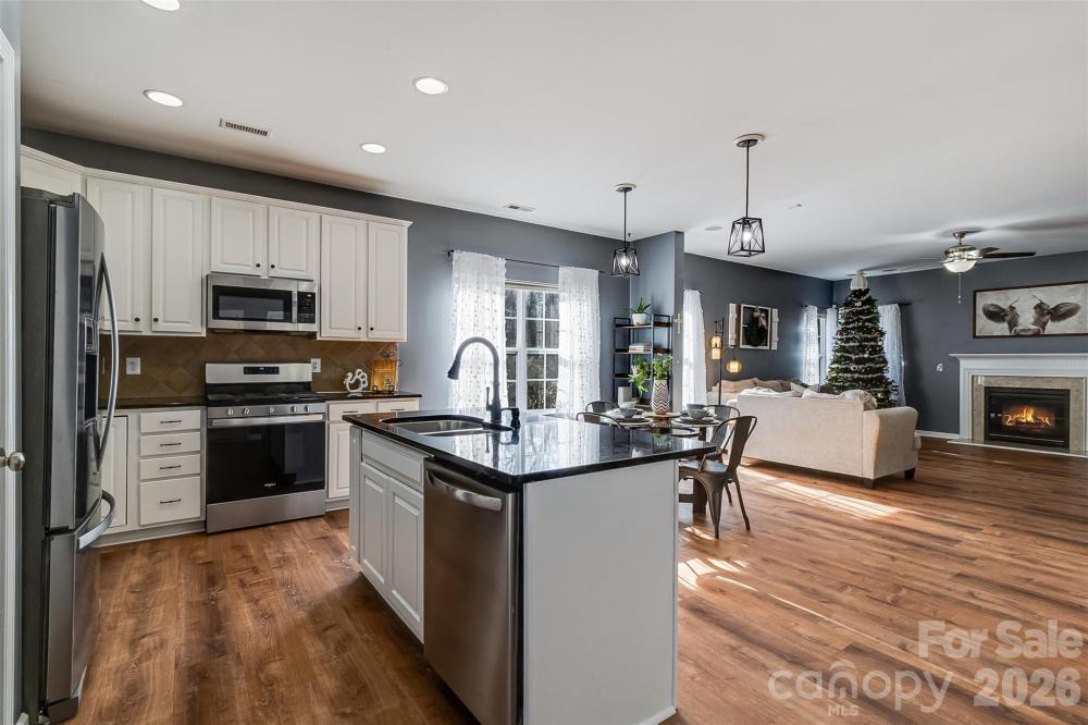 This well-maintained 4-bedroom, 2.5-bath home offers the space and layout today’s buyers are looking for. Step inside to brand-new flooring and a bright, open-concept main level designed for connection. Whether you're hosting friends or enjoying a quiet night in, the spacious layout flows effortlessly into a stunning kitchen featuring granite countertops, abundant cabinetry, and a built-in coffee/wine bar that makes mornings smoother and evenings more inviting. The main-level primary suite offers privacy and convenience with its own ensuite bath, while a dedicated home office gives you the flexibility to work or study without sacrificing space. Upstairs, you’ll find three additional bedrooms, a full bath, and a versatile loft — perfect for movie nights, a playroom, teen hangout, or even multi-generational living. Out back? A fully fenced yard backing to peaceful woods — no rear neighbors, just privacy and room to relax. Located in the highly desirable Westland Farm community, you’ll enjoy a neighborhood pool, walking trails, and playground — all just minutes from downtown Mount Holly, the airport, and Charlotte. With a new roof, thoughtful updates throughout, and a seller-provided home warranty for added peace of mind, this home is ready for its next chapter.