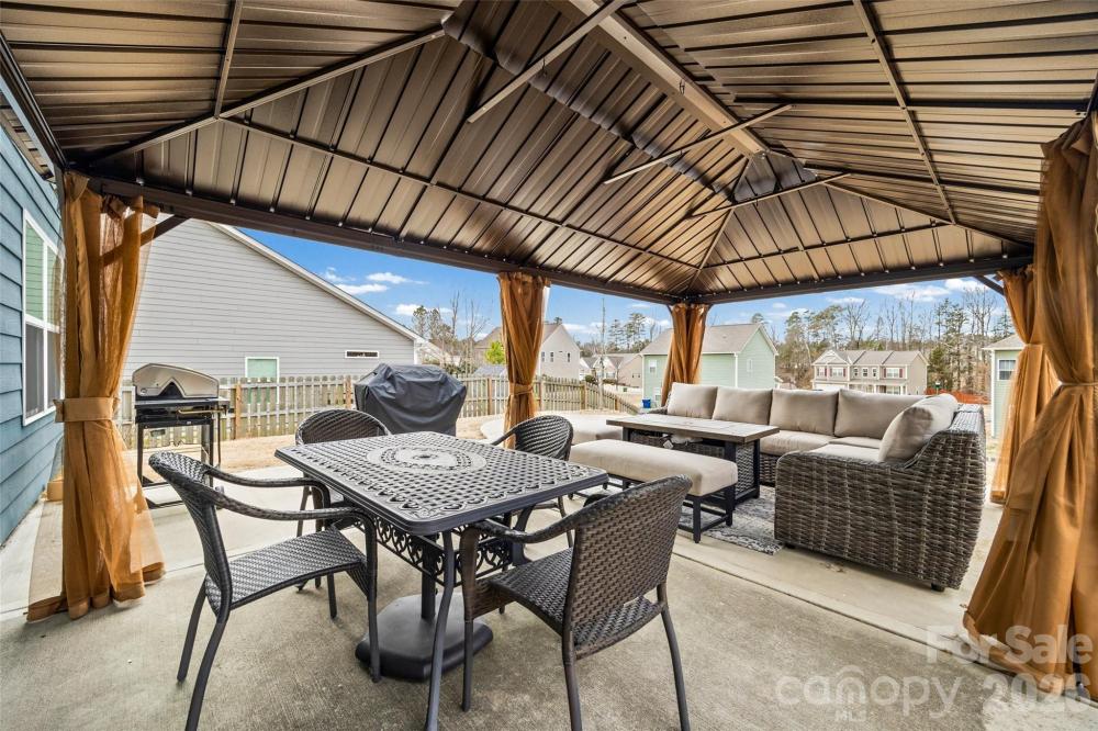Welcome to this beautiful 3 bedroom, 2.5 bathroom single-family home in highly desirable River Park in Mount Holly, NC — where community, convenience, and lifestyle come together. This home features a fenced backyard, an oversized back patio with a large gazebo, and space for a future firepit — perfect for entertaining or relaxing evenings at home. A welcoming covered front porch adds charm and curb appeal. Inside, 9-foot ceilings on the main floor and an open-concept floor plan create a bright, spacious feel. The kitchen offers granite countertops, LVP floors, stainless-steel appliances, a built-in desk/drop zone area, and seamless flow into the living room — ideal for everyday living and hosting gatherings. Upstairs, you’ll find all 3 bedrooms, 2 full bathrooms, and a convenient laundry room. The two-car garage provides added storage and functionality. River Park residents enjoy resort-style amenities including a **community pool, clubhouse, playground, walking trails, pocket parks, sidewalks, and streetlights. The neighborhood hosts year-round events like chili cook-offs, outdoor movie nights, Santa visits, Easter egg hunts, and rotating food trucks — creating a true sense of community. Take a short walk to Mount Holly Main Street for “Mount Holly Nights” featuring live music, food trucks, a beer tent, and kid-friendly activities. The scenic trail extension is currently under construction to connect to River Street Park and Dutchman’s Creek, offering kayak and boat launch access. Conveniently located minutes from the U.S. National Whitewater Center, Charlotte Douglas International Airport, I-485, I-85, and public access to the Catawba River.