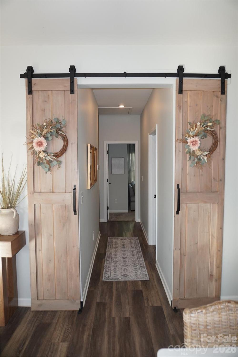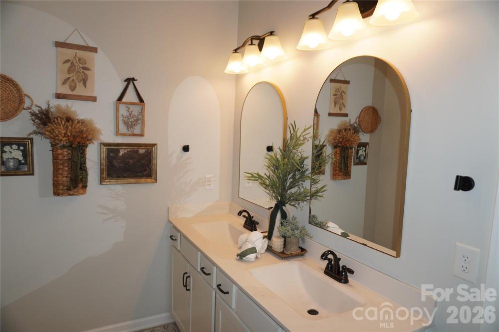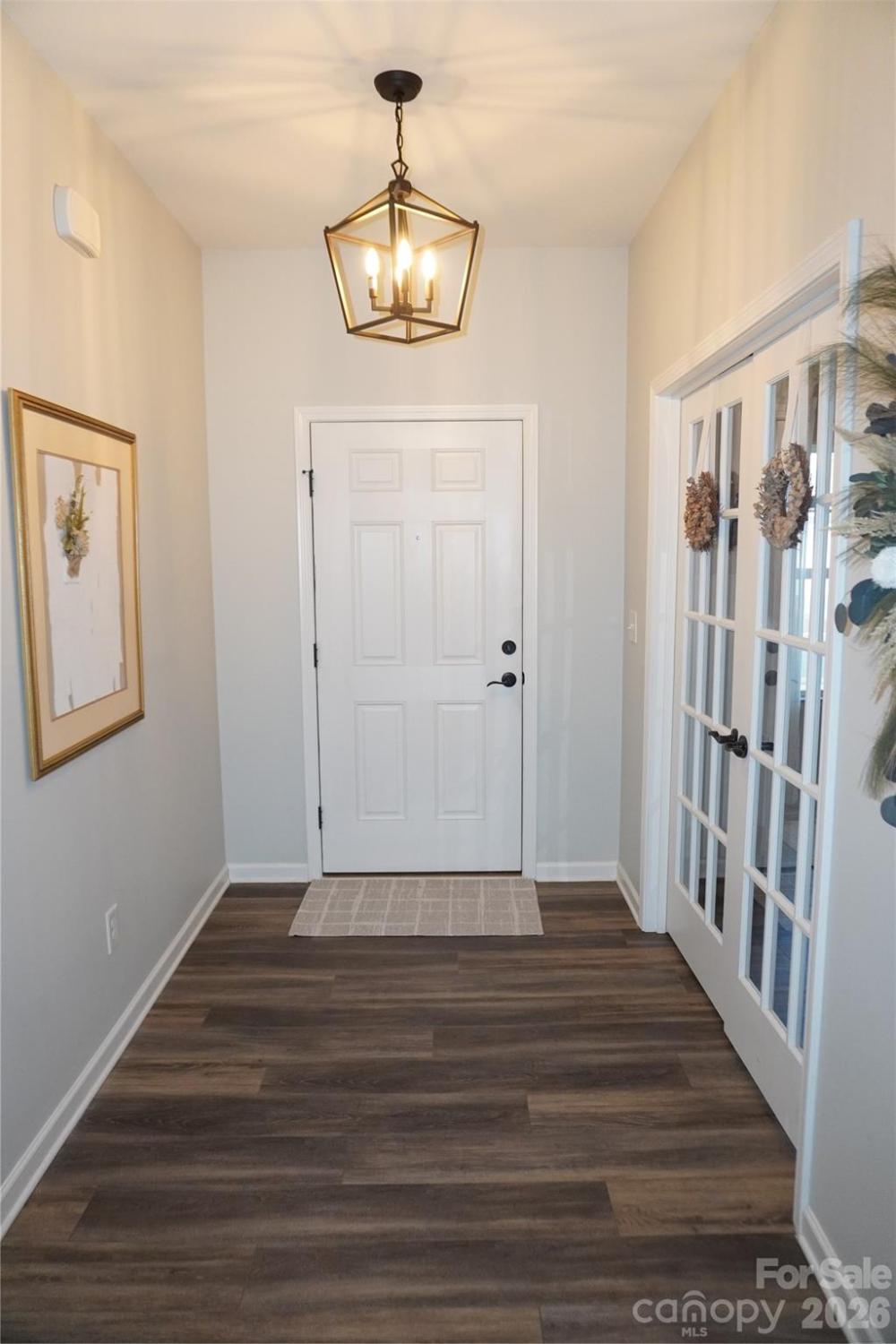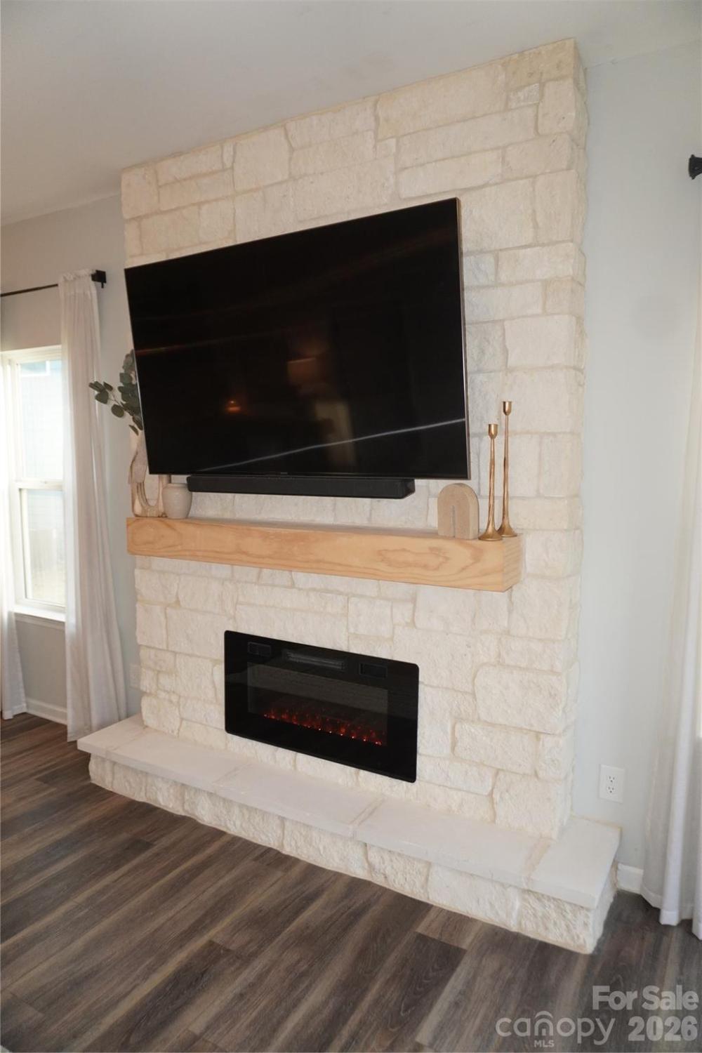 Beautifully updated 3-bedroom, 2-bath ranch in highly sought-after River Park community, thoughtfully elevated far beyond the builder’s basic finishes. Upon entry, you’re welcomed into a completely open floor plan highlighting a chef’s kitchen featuring white shaker cabinetry, quartz countertops, tile backsplash, stainless steel appliances, and an oversized island perfect for gathering and entertaining. The dining area flows seamlessly into the living room, where a designer electric fireplace with custom wood mantle & Eldorado stone surround creates a warm focal point, adding so much character. Behind french doors, the dedicated home office offers the perfect work-from-home setup and has been beautifully upgraded with custom trim work, a built-in bookshelf, and a rich, color-drenched navy finish that gives the room a moody feel. The primary suite features a forest green trim accent wall and custom walk-in closet with built-ins. A sliding barn door leads to the ensuite bath, complete with a walk-in tile shower with bench, double-sink vanity, and elevated design finishes. A split floor plan offers additional privacy, with the secondary bedrooms and full bath tucked away behind dual antique sliding doors off the main living space—adding both function and a unique architectural detail. Spacious laundry room features floating shelves for added storage. Enjoy North Carolina’s beautiful weather year-round in the thoughtfully designed backyard, featuring a concrete pad and extended paver patio with retaining wall and privacy walls, creating the perfect setting for relaxing. Rather than taking on the time and expense of upgrades yourself, enjoy the advantage of a home that is already beautifully updated, on-trend, and completely move-in ready. River Park neighborhood offers fantastic family-friendly amenities, including a community clubhouse, pool, playground, and walking trails. Designed to stand out; this home delivers the style and personality buyers are searching for!