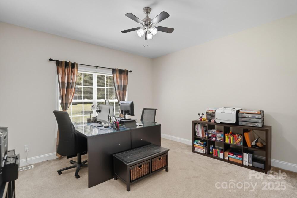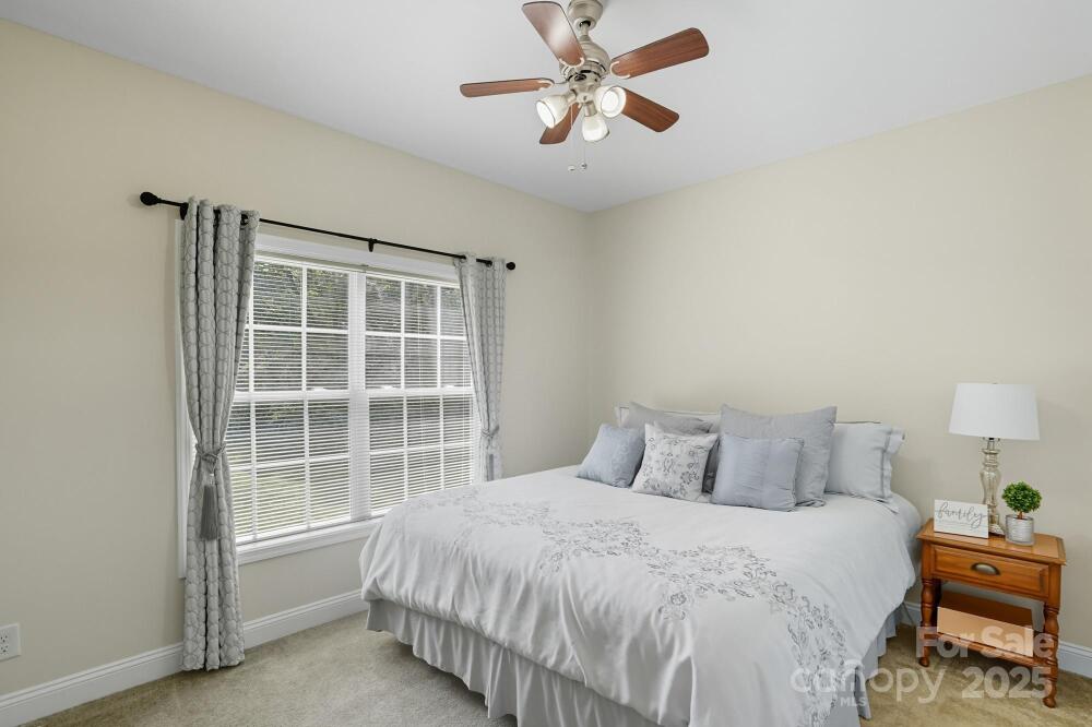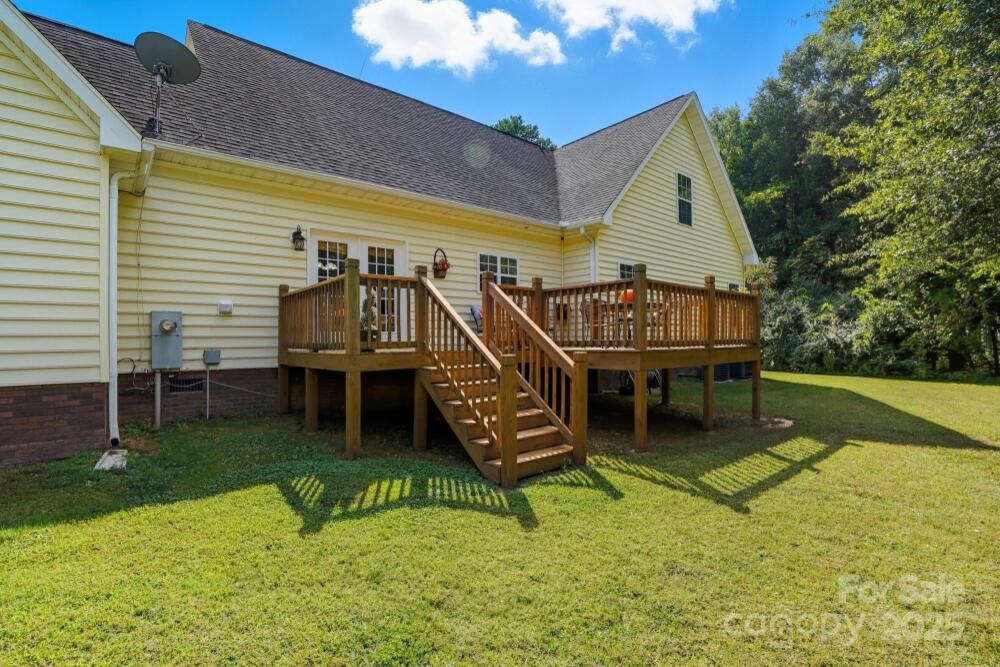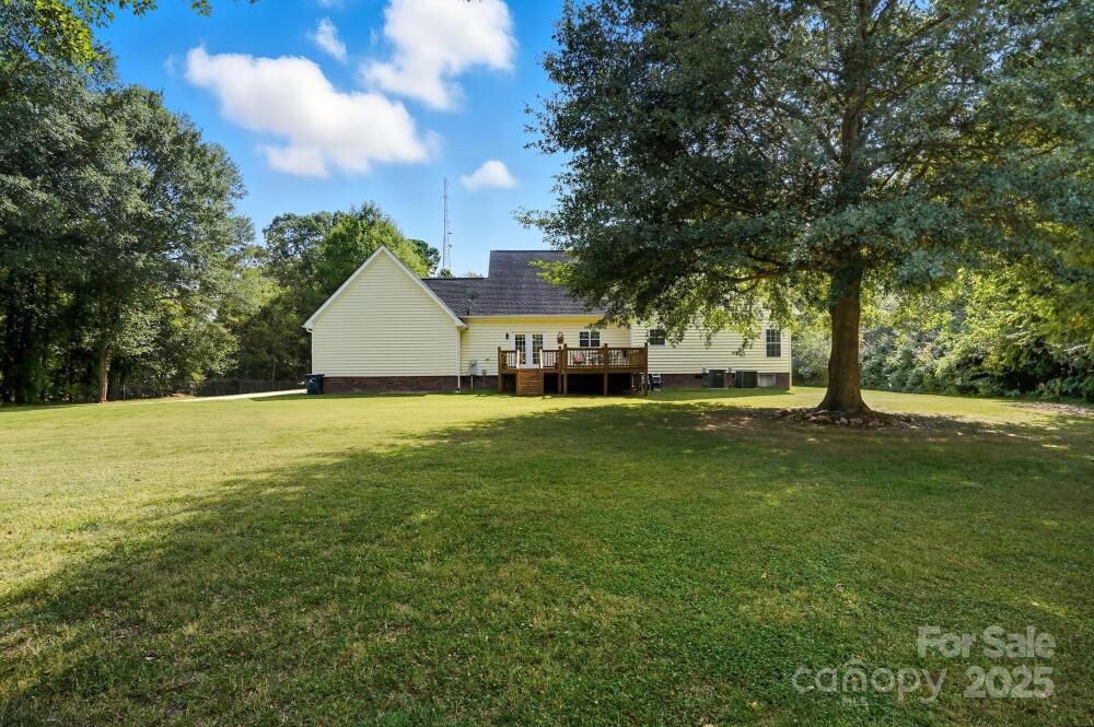 Welcome home to this one owner home on almost an acre home site that has been well cared for and nestled privately just outside Charlotte minutes from 485 and other major roadways, shopping & dining. Schedule your appointment to view because this home has too many features to list them all here. Our favorite features include, NO HOA DUES, the large front porch and deck roomy enough to hang out with family and friends that was refreshed in 2025, large garage with attic access that has been floored and braced for extra storage, updated neutral paint throughout in 2025, water heater updated 2021, HVAC updated in 2017 and 2025, connected great room, dining, and kitchen with large island for prep and entertaining with a window overlooking the backyard, spacious primary suite with TWO walk-in closets and en suite bath with framed mirrors, 2 sinks, water & linen closets, and separate garden tub & shower, comfort height toilets and updated plumbing fixtures, media room with surround sound, the upstairs rooms have added character with nooks, this home also has flood lights, ring doorbell, an inside camera and outside cameras. The washer and dryer, some furniture, and more can remain with acceptable offer. Sellers recently had septic pumped 11/25 with the septic upgrade and garage door serviced in 2025 as well.