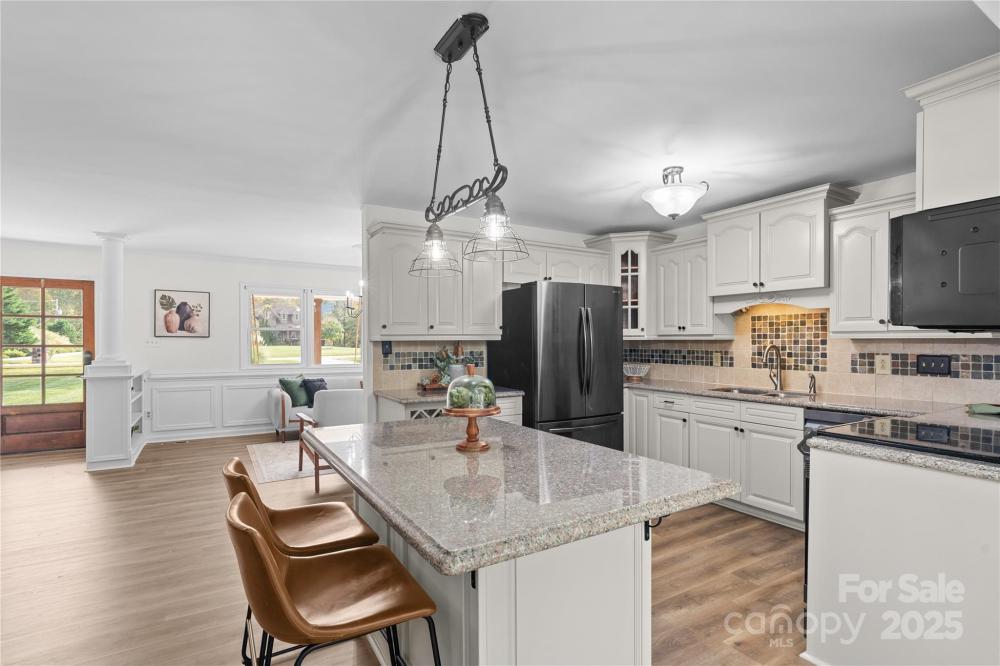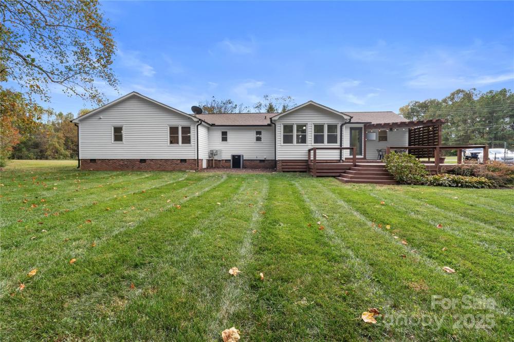 Now offering Seller Finance/Lease Purchase Options! Step inside this stunning modern farmhouse offering all one-level living and the perfect blend of charm, comfort, and space. The open-concept floor plan creates a seamless flow from room to room, ideal for both everyday living and entertaining. The heart of the home is the large kitchen featuring an eat-at island, beautiful cabinetry, large pantry, a dream for anyone who loves to cook or host. The kitchen opens to a spacious family room and a gorgeous dining room, surrounded by windows, makes the perfect space for gatherings. This thoughtfully designed floor plan includes 3 bedrooms, 4 full bathrooms, plus 2 additional rooms with closets- perfect for a home office, playroom, or guest suite. A dedicated office space makes working from home a breeze. Outside, enjoy peaceful mornings or relaxing evenings on the covered front and back porches, overlooking 1.25 acres of land backed up to mature trees for privacy. The property also includes a storage shed, offering space for lawn equipment or hobbies.